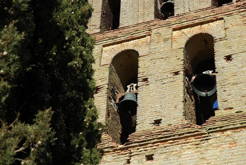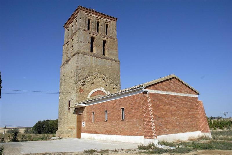 Al otro lado de la carretera principal que le cruza, se yergue la silueta de una torre mudéjar que perteneciera a otra iglesia anterior, y de la que hoy no se conserva nada. En su lugar se ha levantado otra en mampostería y ladrillo adosada a la vieja torre.